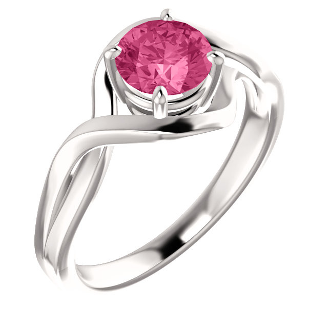 14 Karat White Gold Tourmaline Ring is set with selected fine genuine pink tourmaline and set with the highest craftsmanship standards in 14kt White gold