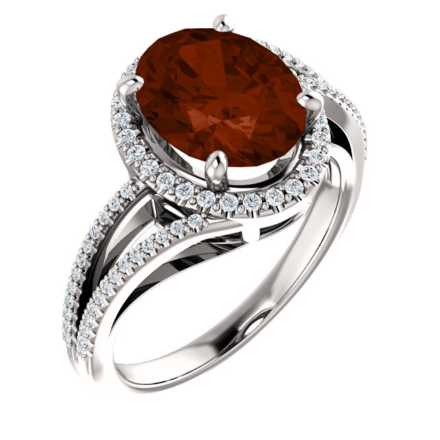 14 Karat White Gold Genuine Red Garnet & 0.25 Carat Total Weight Diamond Ring is set with selected fine genuine garnet and set with the highest craftsmanship standards in 14kt White gold