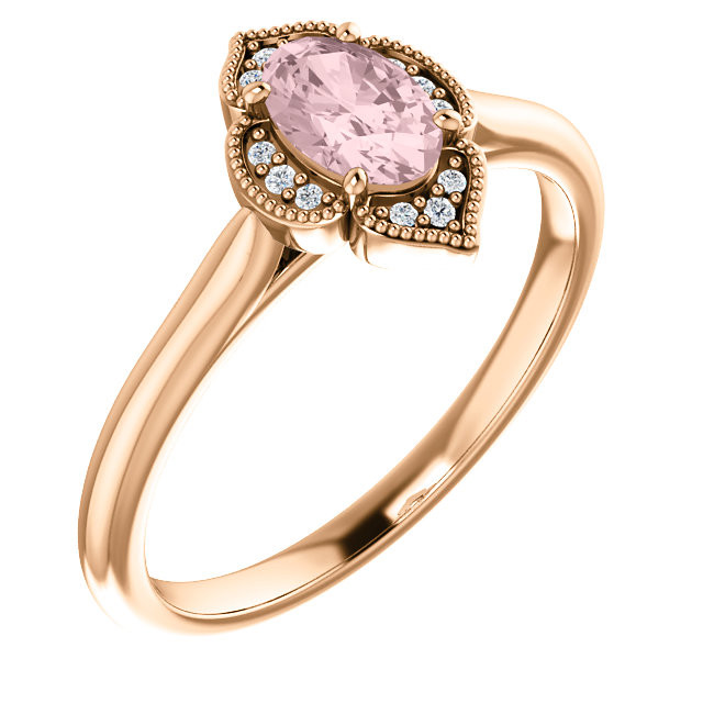 14 Karat Rose Gold Morganite and .03 Carat Diamond Ring