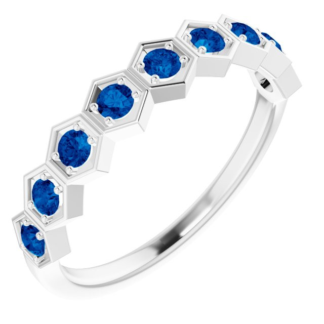 Platinum Lab Grown Created Blue Sapphire Stackable Ring - Lovely Round Lab-Created Sapphire Ring is a timeless jewelry item made in the highest standards for Gemstone Fashion jewelry