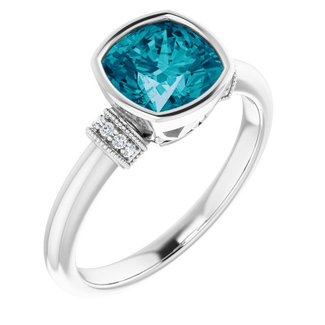 14 Karat White Gold London Blue Topaz & .04 Carat Diamond Ring - Nice Cushion Topaz Ring is a timeless jewelry item made in the highest standards for Gemstone Fashion jewelry