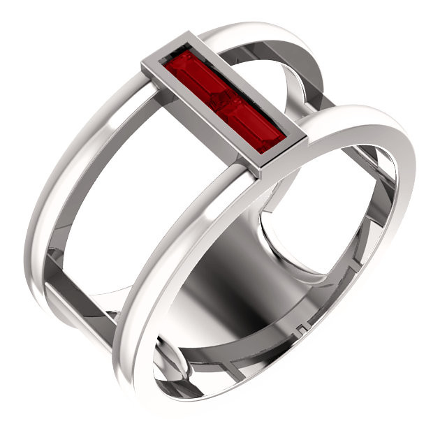 14 Karat White Gold Ruby Baguette Ring is set with selected fine genuine ruby and set with the highest craftsmanship standards in 14kt White gold