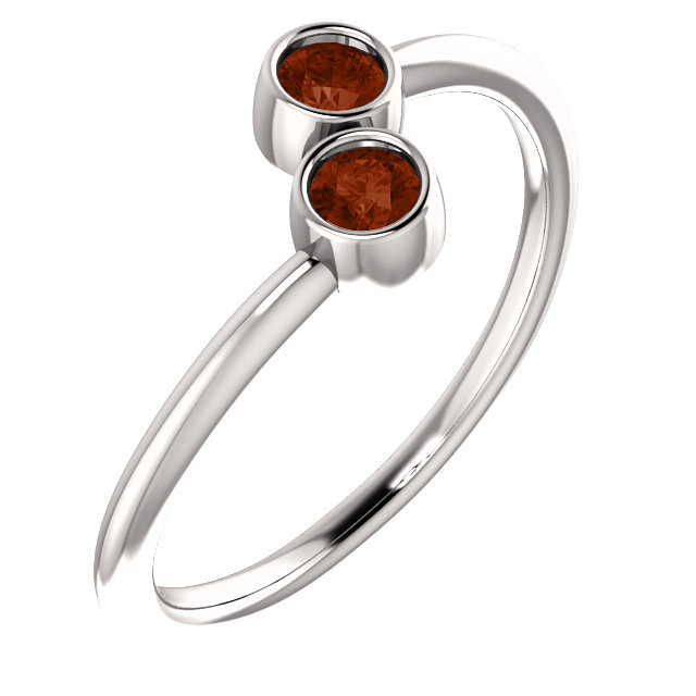 14 Karat White Gold Genuine Red Garnet Two-Stone Ring is set with selected fine genuine garnet and set with the highest craftsmanship standards in 14kt White gold