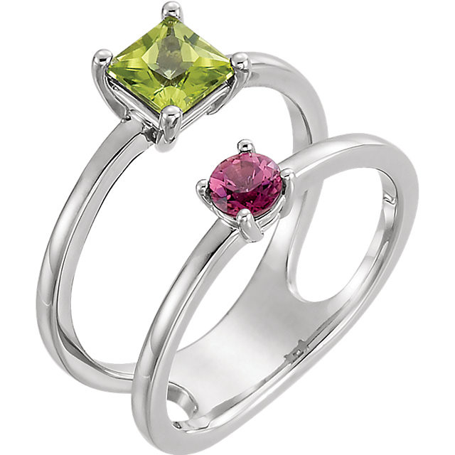 Sterling Silver Peridot & Pink Tourmaline Two-Stone Ring is set with selected fine genuine peridot and set with the highest craftsmanship standards in sterling silver