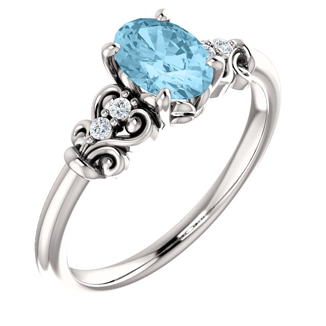 Platinum Aquamarine & .04 Carat Total Weight Diamond Ring is set with selected fine genuine aquamarine and set with the highest craftsmanship standards in platinum