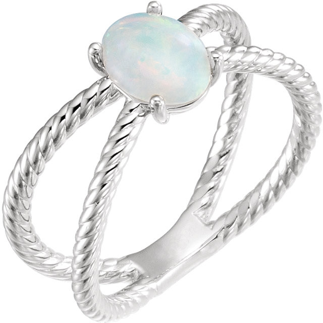 Sterling Silver 8x6mm Oval Cabochon Rope Ring Mounting is set with selected fine genuine opal and set with the highest craftsmanship standards in sterling silver