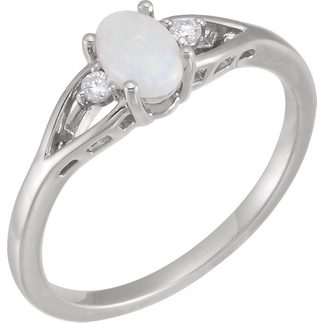 Sterling Silver Opal & .04 Carat Total Weight Diamond Ring is set with selected fine genuine opal and set with the highest craftsmanship standards in sterling silver