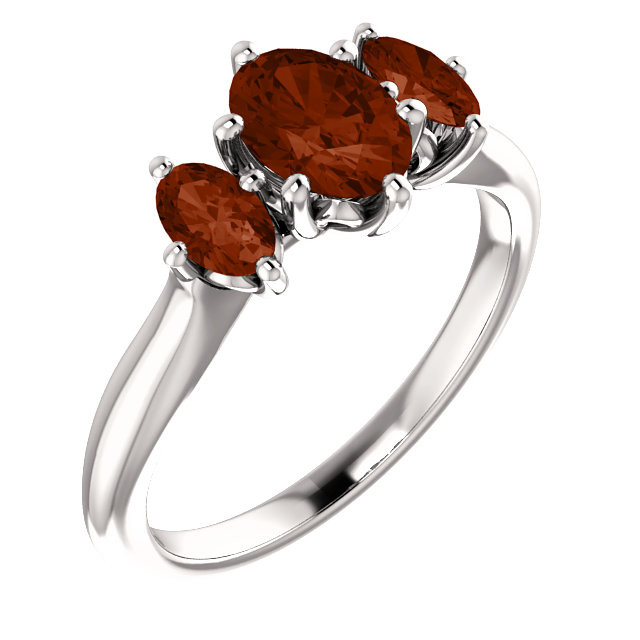 14 Karat White Gold 7x5mm Oval Garnet Gemstone Ring