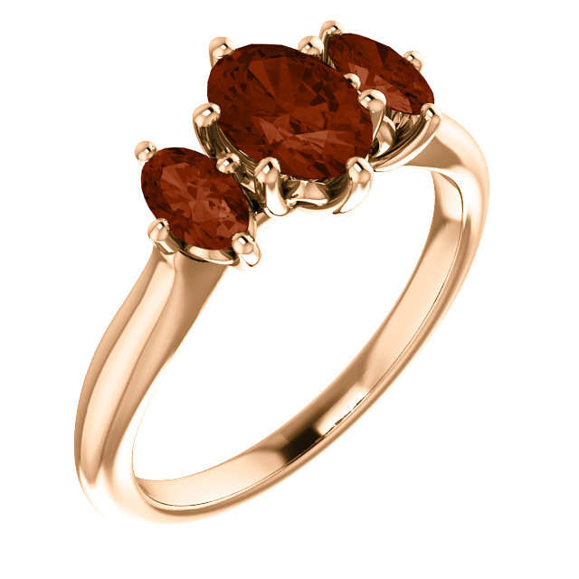 14 Karat Rose Gold 7x5mm Oval Garnet Ring is set with selected fine genuine garnet and set with the highest craftsmanship standards in 14kt Rose Gold