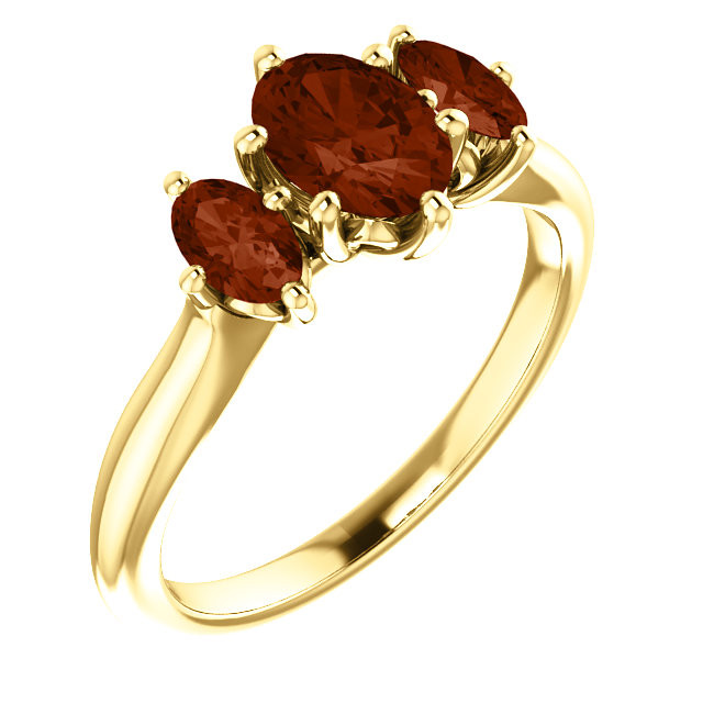 14 Karat Yellow Gold 7x5mm Oval Garnet Ring is set with selected fine genuine garnet and set with the highest craftsmanship standards in 14kt Yellow Gold