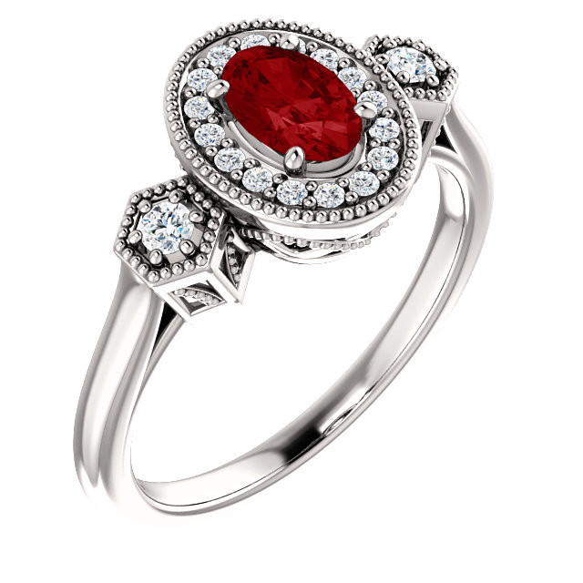 14 Karat White Gold Lab-Grown Ruby & .17 Total Carat Weight Diamond Ring