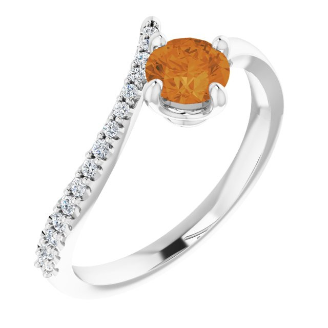 14 Karat White Gold Citrine and 0.10 Carat Diamond Bypass Ring