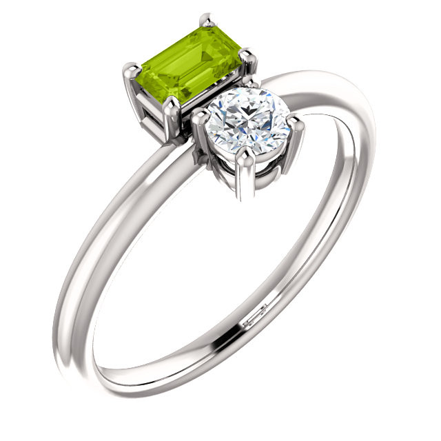 Must See Platinum Peridot and Sapphire 2 Stone Ring