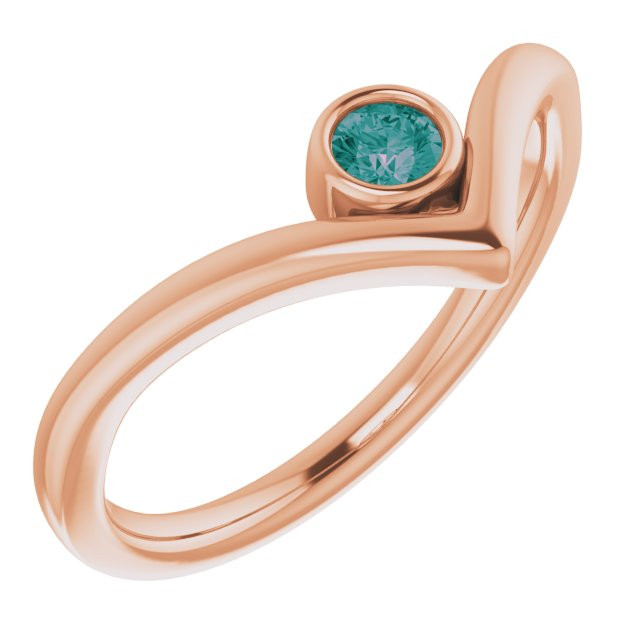 Lab Grown Alexandrite set in 14 Karat Rose Gold Lab Grown Alexandrite Solitaire Bezel Set V Ring