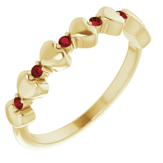 14 Karat Yellow Gold Mozambique Garnet Stackable Heart Ring