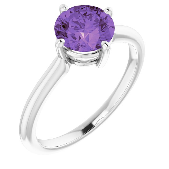 Platinum Amethyst Solitaire Ring - Chic Round Amethyst Ring is a timeless jewelry item made in the highest standards for Gemstone Fashion jewelry