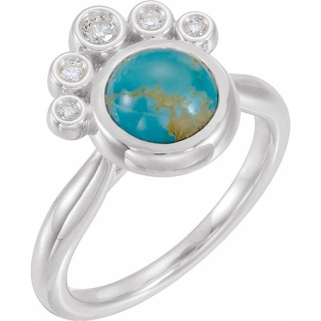Sterling Silver Kingman Turquoise and 0.15 Carat Diamond Ring