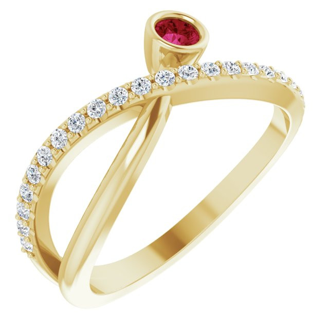 14 Karat Yellow Gold Ruby & 0.20 Carat Diamond Ring - Fashionable Round Ruby Ring is a timeless jewelry item made in the highest standards for Gemstone Fashion jewelry