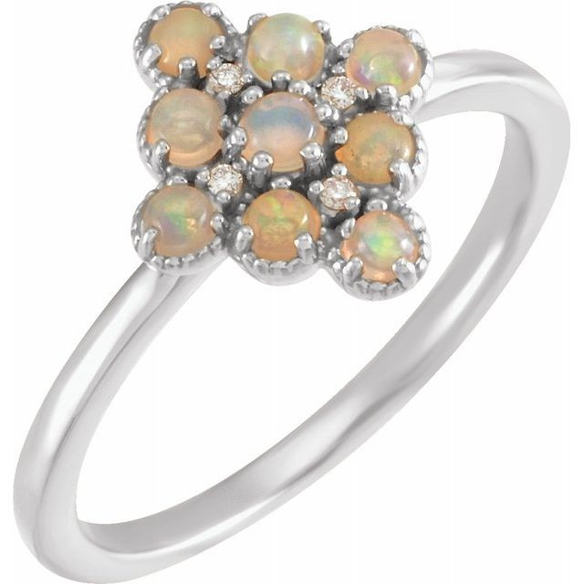 Platinum Ethiopian Opal & .02 Carat Diamond Ring - Graceful Round Opal Ring is a timeless jewelry item made in the highest standards for Gemstone Fashion jewelry