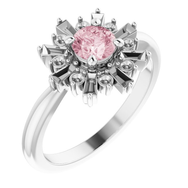 Platinum 5 mm Round Pink Morganite & 0.37 Carat Diamond Ring - Graceful Round Morganite Ring is a timeless jewelry item made in the highest standards for Gemstone Fashion jewelry