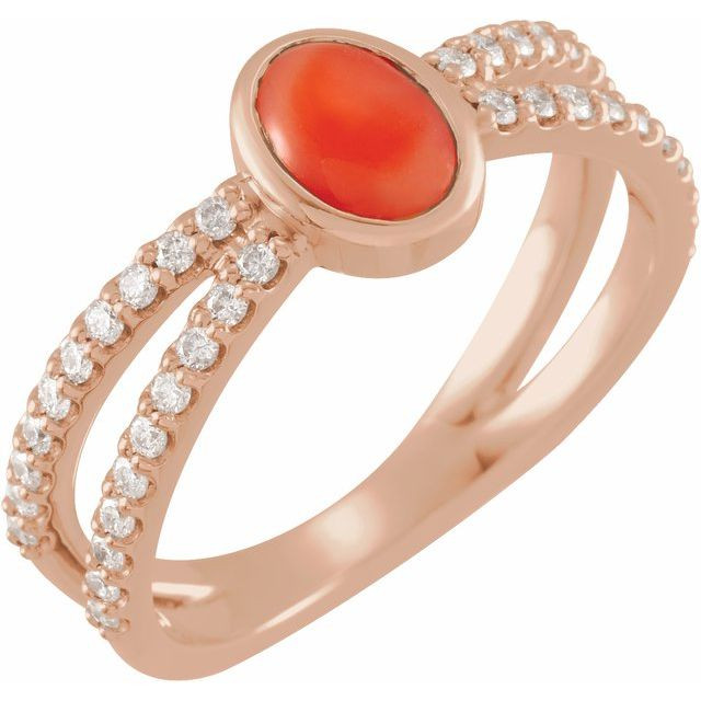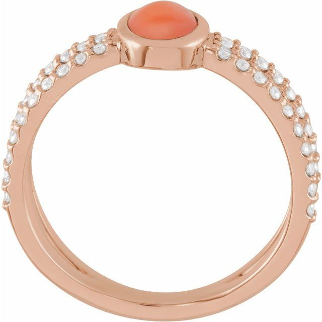 14 Karat Rose Gold and Natural Pink Coral & 0.37 CTW Natural Diamond Ring Comes Set With