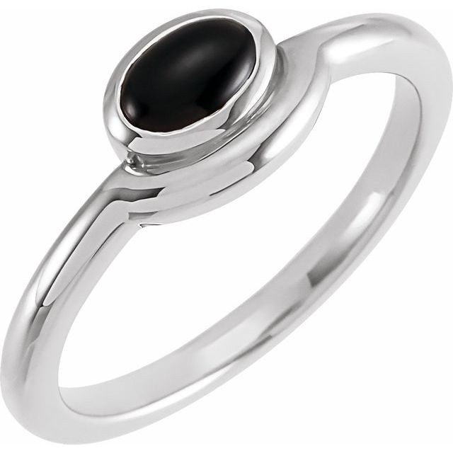 14 Karat White Gold and Natural Black Onyx Bezel-Set Cabochon Ring Comes Set With