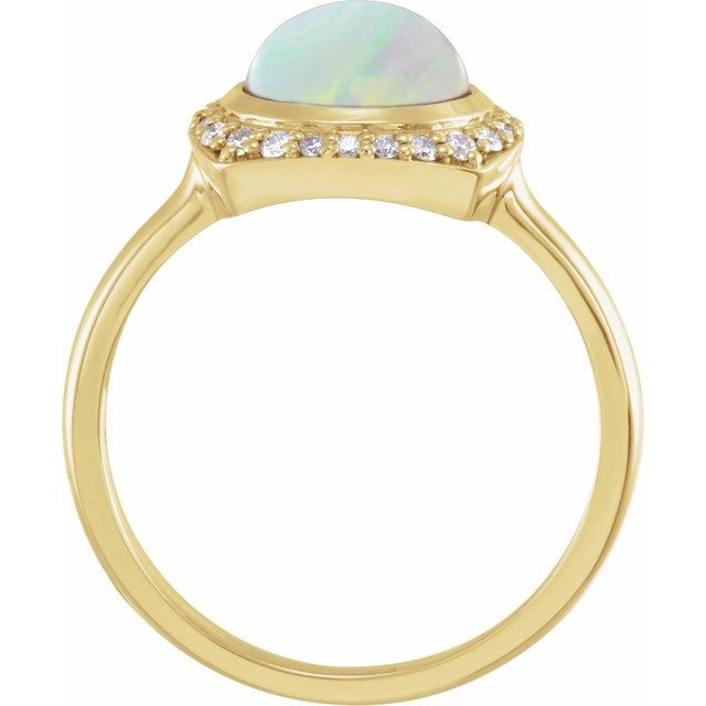 14 Karat Yellow Gold and Natural White Ethiopian Opal & 0.17 CTW Natural Diamond Halo-Style Ring Comes Set With
