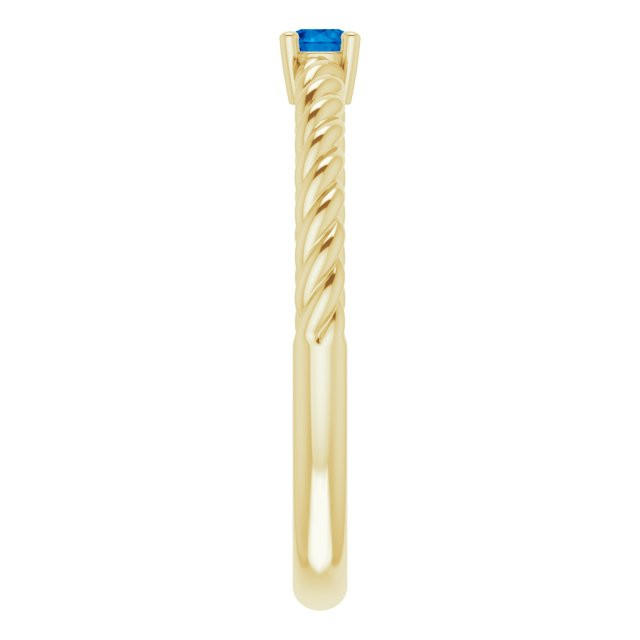 14 Karat Yellow Gold and 3 mm Natural Blue Sapphire Solitaire Rope Ring Comes Set With