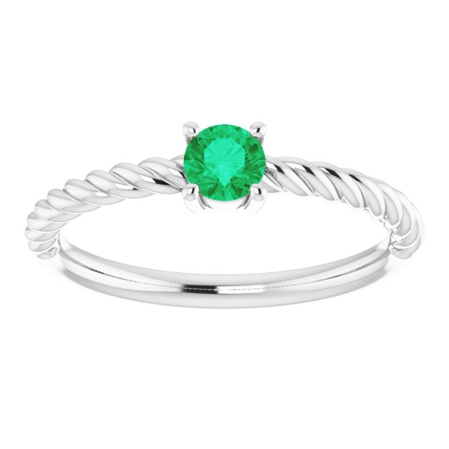 Sterling Silver 4 mm Natural Emerald Solitaire Rope Ring