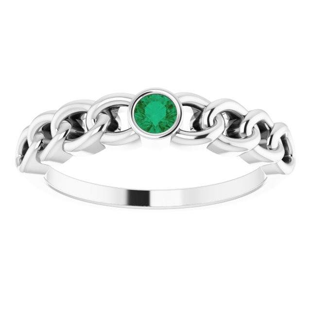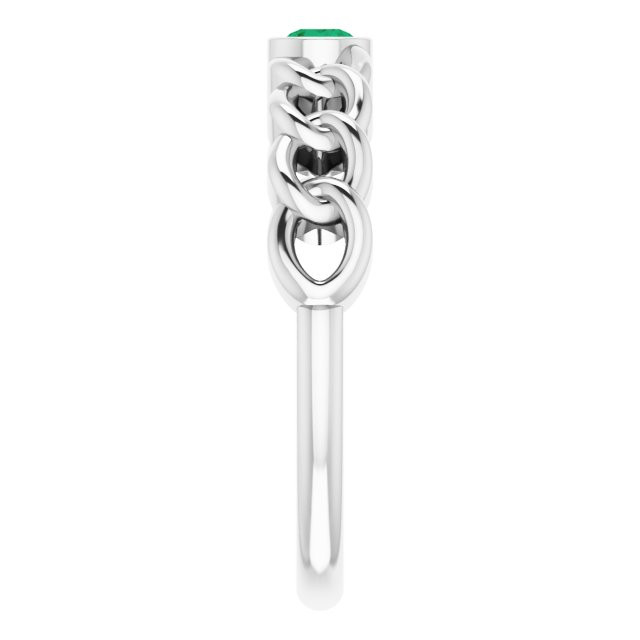 Platinum Natural Emerald Curb Chain Ring