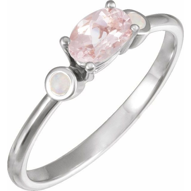 Platinum 6x4 mm Natural Pink Morganite & Natural White Opal Ring Comes Set With