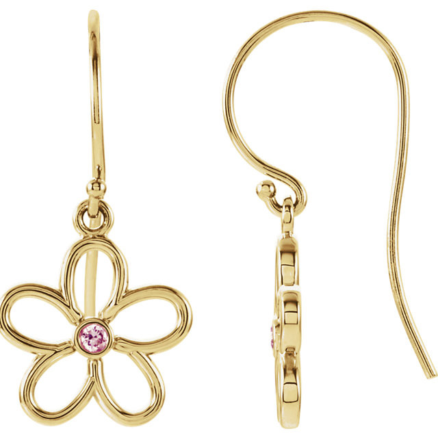 14 Karat Yellow Gold Pink Tourmaline Flower Earrings