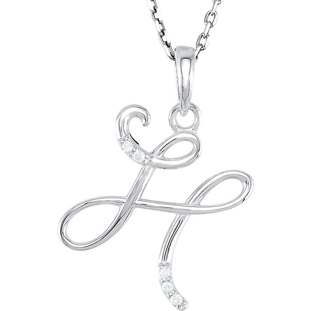 This beautiful 14 Karat White Gold .03 Carat Total Weight Diamond Letter "H" Script Initial 18 inch Necklace is set with selected fine genuine diamond and set with the highest craftsmanship standards in 14kt White gold