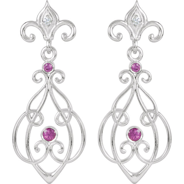 This beautiful Sterling Silver with 14 Karat White Gold Post Ruby & .025 Carat Total Weight Diamond Earrings is set with selected fine genuine ruby and set with the highest craftsmanship standards in sterling silver
