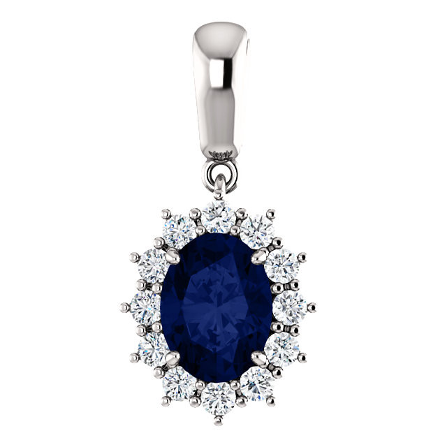 This beautiful 14 Karat White Gold Genuine Lab Created Created Blue Sapphire & 0.33 Carat Total Weight Diamond Pendant is set with selected fine Lab blue sapphire and set with the highest craftsmanship standards in 14kt White gold