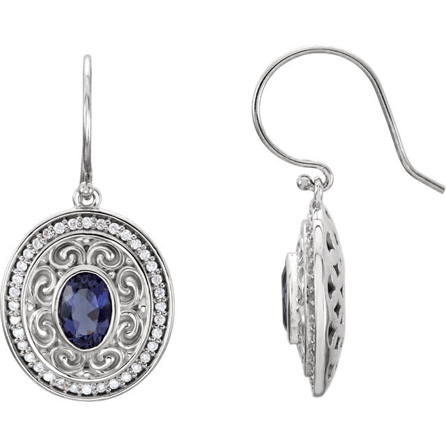 Buy 14 Karat White Gold Iolite and 0.33 Carat Diamond Earrings
