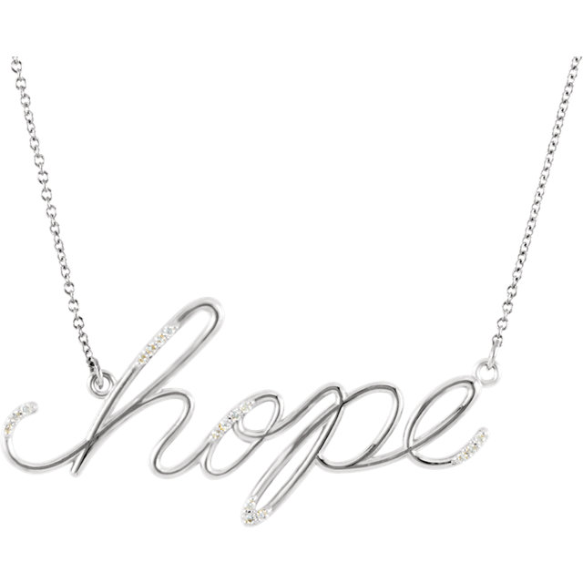This beautiful 14 Karat White Gold .08 Carat Total Weight Diamond Hope 16 0.50” Necklace is set with selected fine genuine diamond and set with the highest craftsmanship standards in 14kt White gold