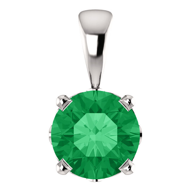 This beautiful 14 Karat White Gold Genuine Lab Created Created Emerald Scroll Pendant is set with selected fine Lab emerald and set with the highest craftsmanship standards in 14kt White gold