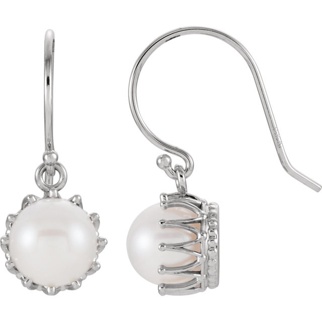 14 Karat White Gold 7.5 8mm Freshwater Cultured Pearl Crown Earrings