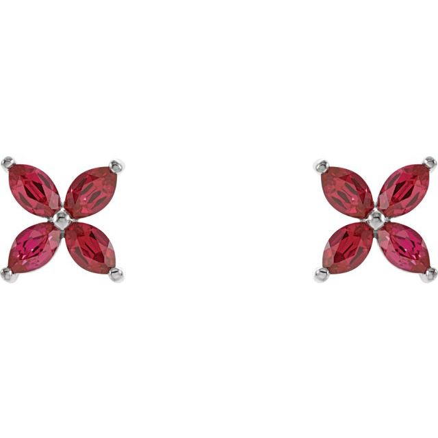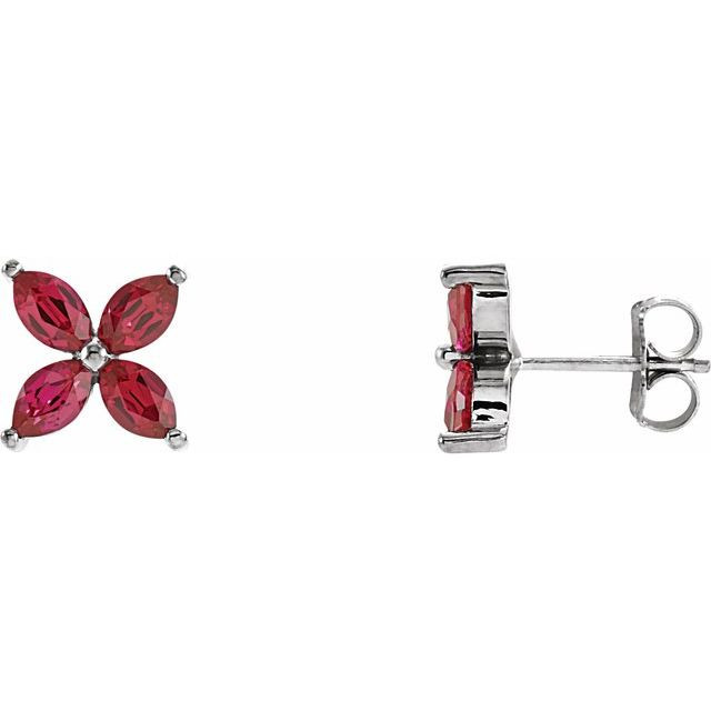 14K White Lab-Grown Ruby Earrings Comes Set With