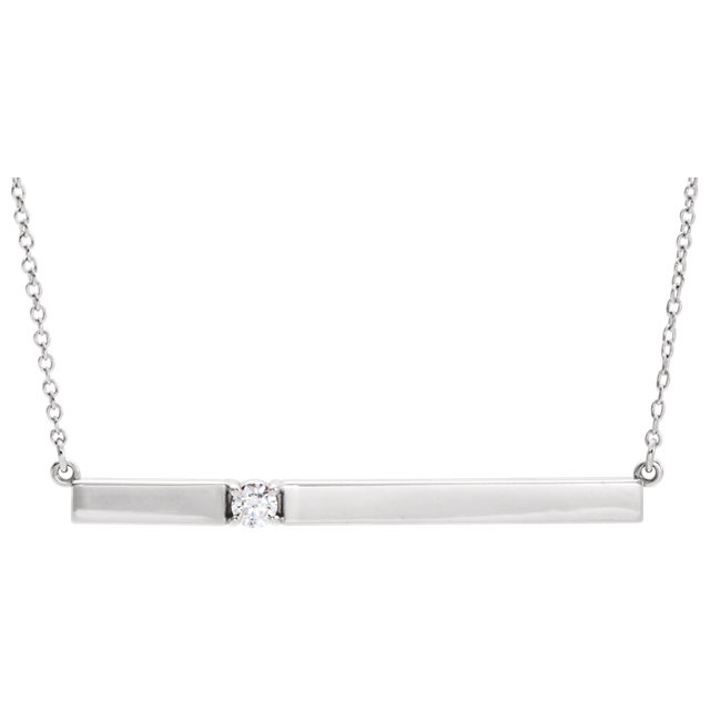 This beautiful 14 Karat White Gold 0.10 Carat Total Weight Diamond Bar 17.5" Necklace is set with selected fine genuine diamond and set with the highest craftsmanship standards in 14kt White gold