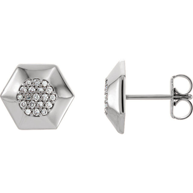 14 Karat White Gold 0.17 Carat Diamond Geometric Earrings with Backs