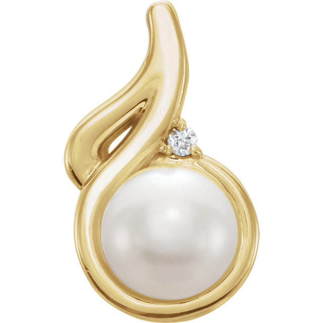 14 Karat Yellow Gold Freshwater Pearl and .01 Carat Diamond Pendant