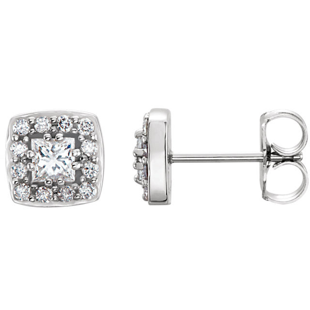 Graceful 14 Karat White Gold 0.50 Carat Square Genuine Diamond Earrings