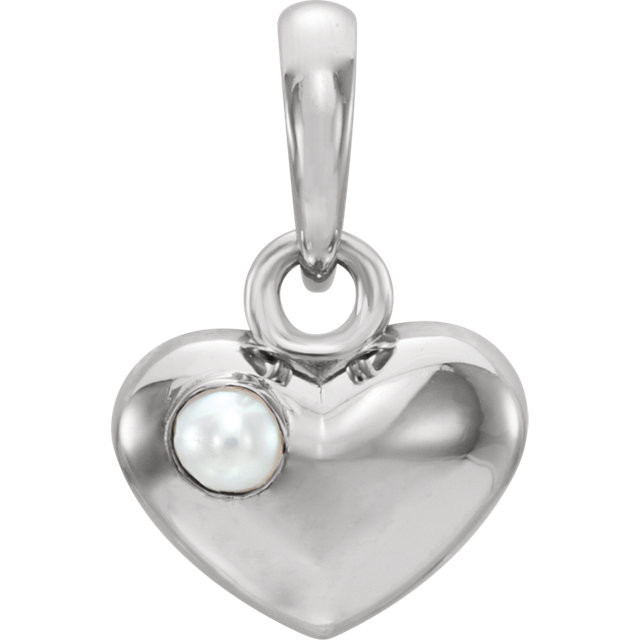14 Karat White Gold Freshwater Pearl Heart Pendant