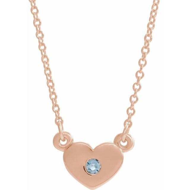 14 Karat Rose Gold Aquamarine Gem Heart 16 inch Necklace