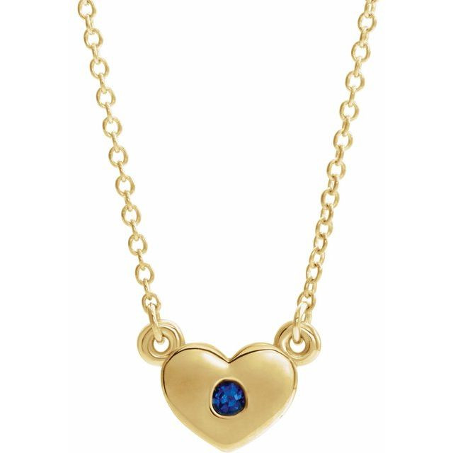 Created Sapphire Necklace in 14 Karat Yellow Gold Created Sapphire Heart 16 inch Necklace
