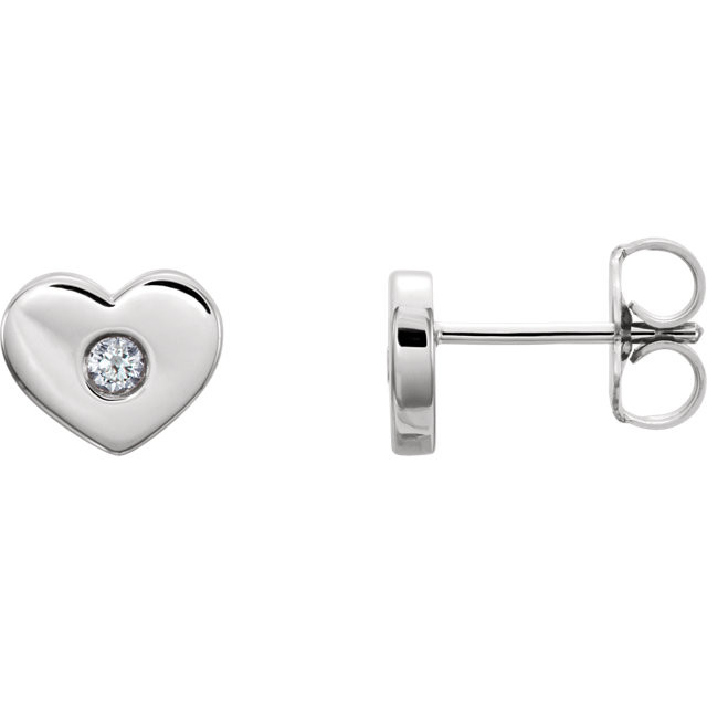 Genuine 14 Karat White Gold .06 Carat Diamond Heart Earrings
