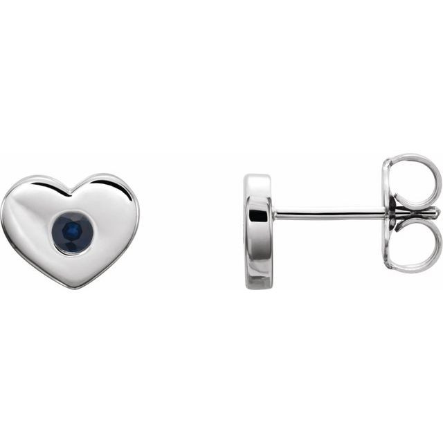14 Karat White Gold Genuine Blue Sapphire Heart Earrings