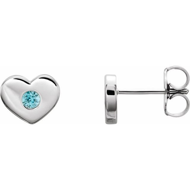 Platinum Genuine Blue Zircon Heart Earrings